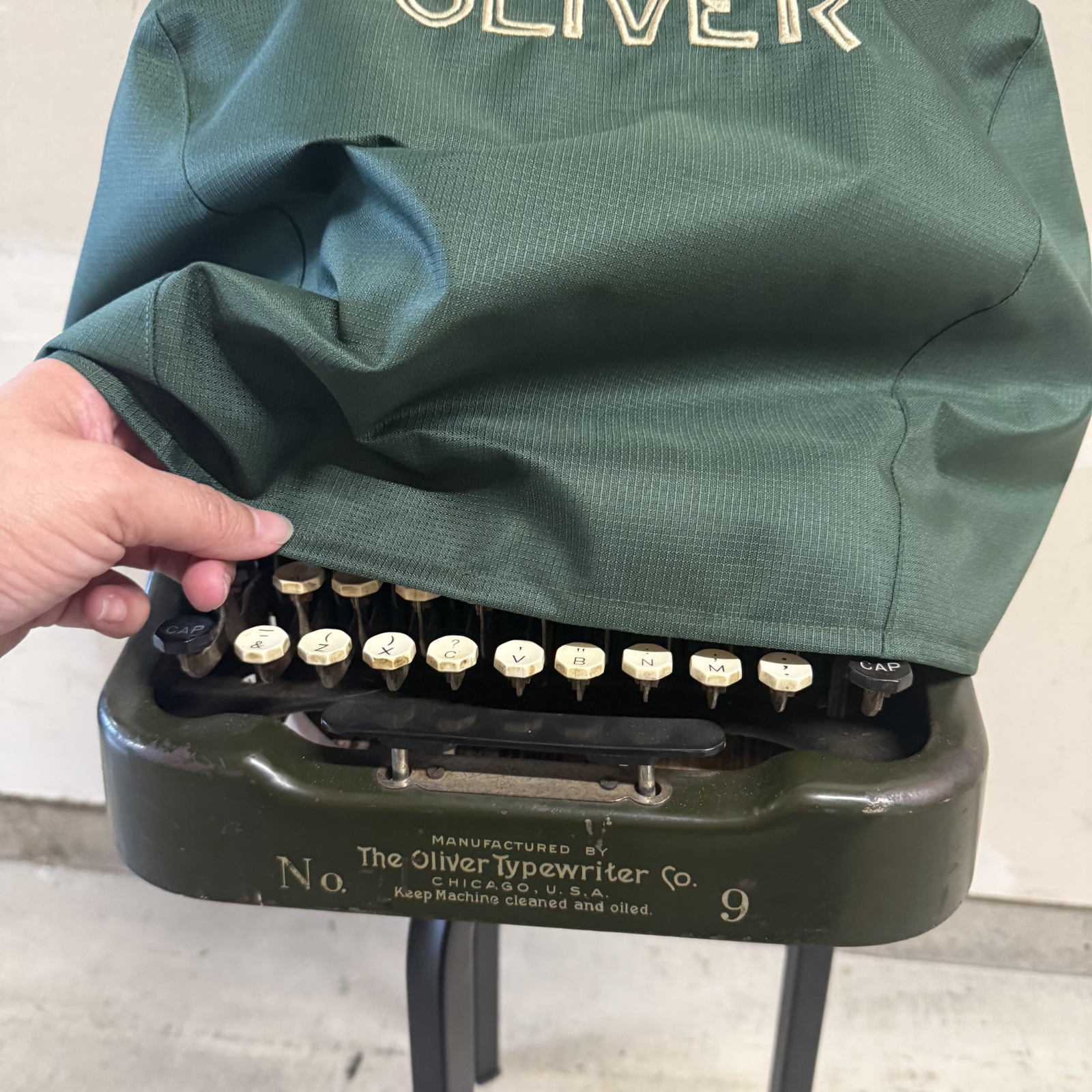 This is a made-to-order custom fit dust cover for your Oliver № 3, № 5 or № 9 typewriter.